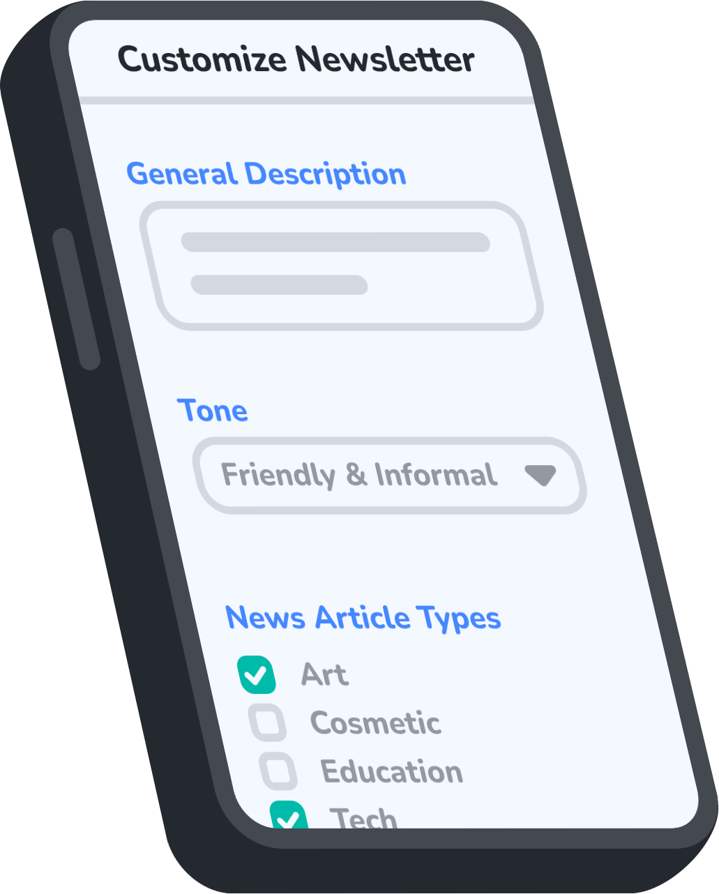 Bring your vision to life by applying custom branding, hand-selecting the topics your readers care about, fine-tuning your tone, and scheduling the perfect send cadence—all in one place. You’re in full control of how your story unfolds.